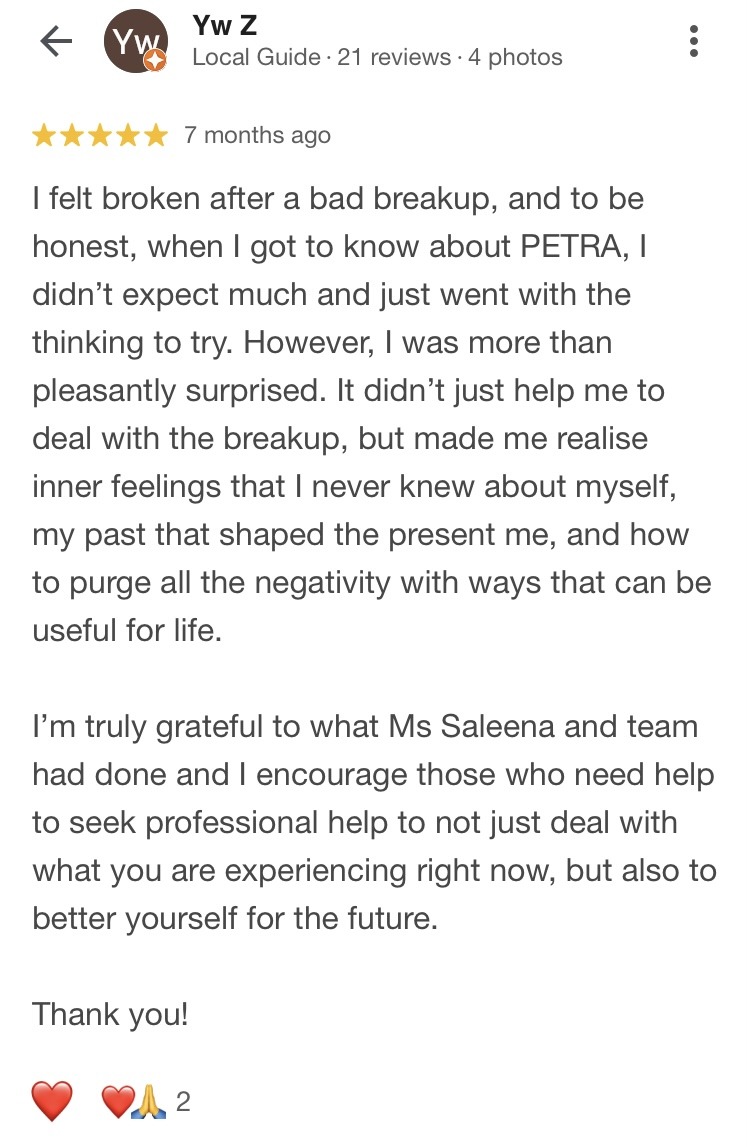 We have been successfully helping clients since 2012. Our team of professional therapists hold advanced graduate degrees (Masters and PhD) from highly ranked American, British, and Singaporean universities.
