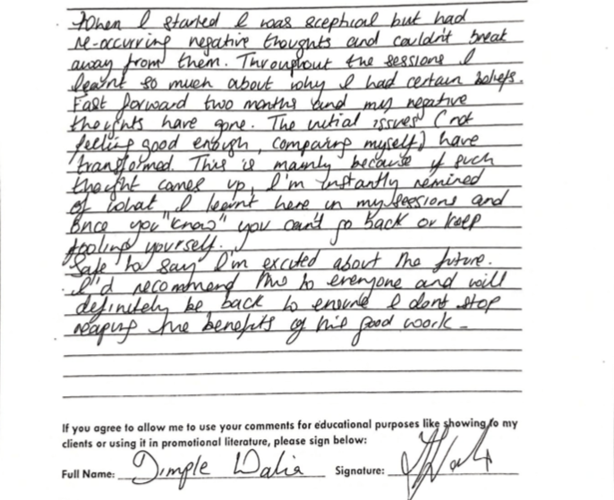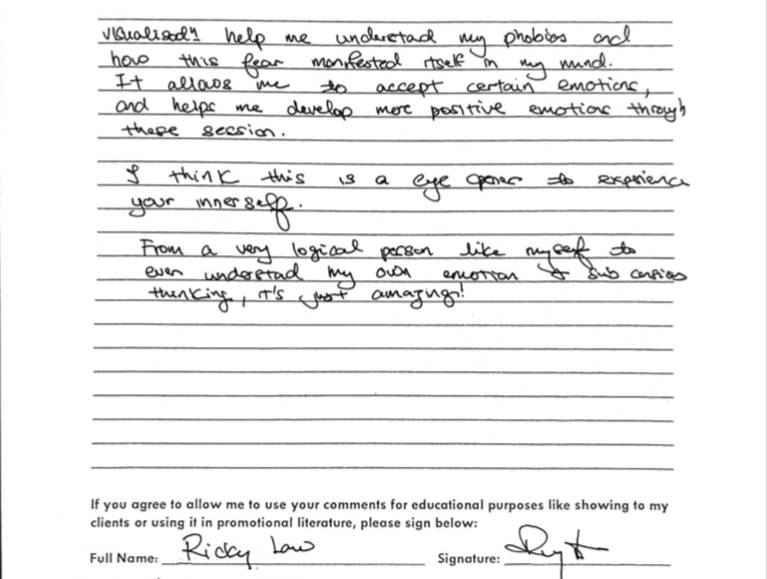 Our multi-pronged solutions-focused therapy programme help clients make a lasting change in how they think, feel and live their life. Clients are also empowered by learning our unique self-help techniques, which they can continue to practice after therapy ends. We also conduct regular meditative hypnosis group classes.